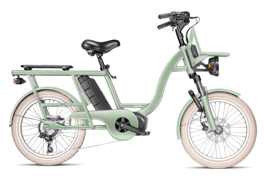 Le Compact est un vélo cargo électrique urbain fiable, confortable et bien équipé, parfait pour les trajets quotidiens ou les balades en ville avec passagers ou charges.